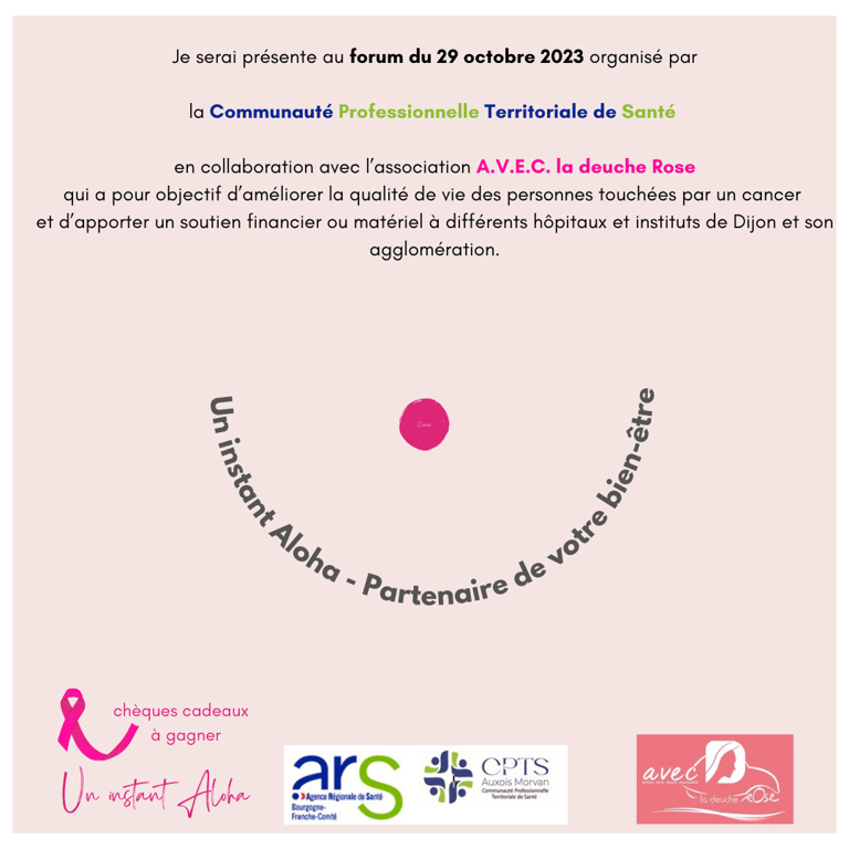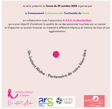 " Parce que cette cause me tient aux tétons, je vous encourage toutes à venir faire un tour au Forum Octobre Rose, dimanche 29 octobre 2023 au Gymnase Saint Roch à Montbard (accès gratuit).